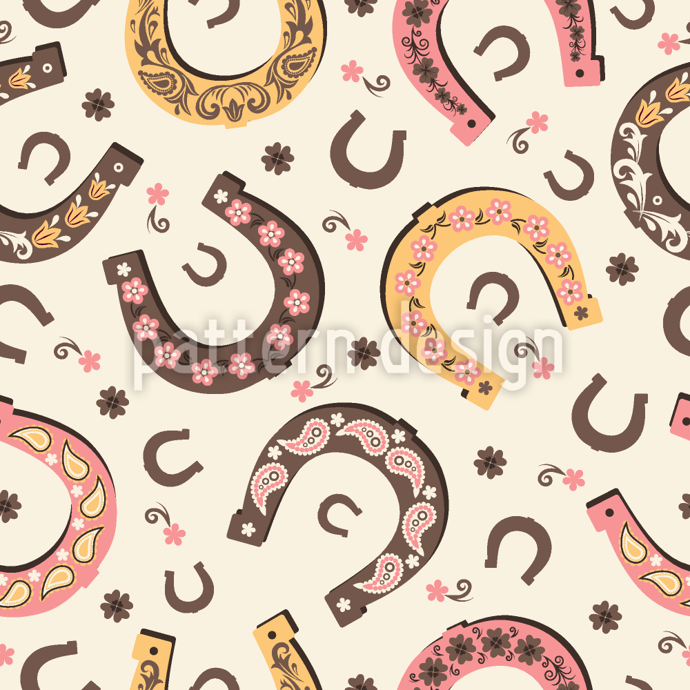 Description | Motif folklorique avec des fers à cheval, des trèfles et des motifs cachemire sur fond pastel. | |||