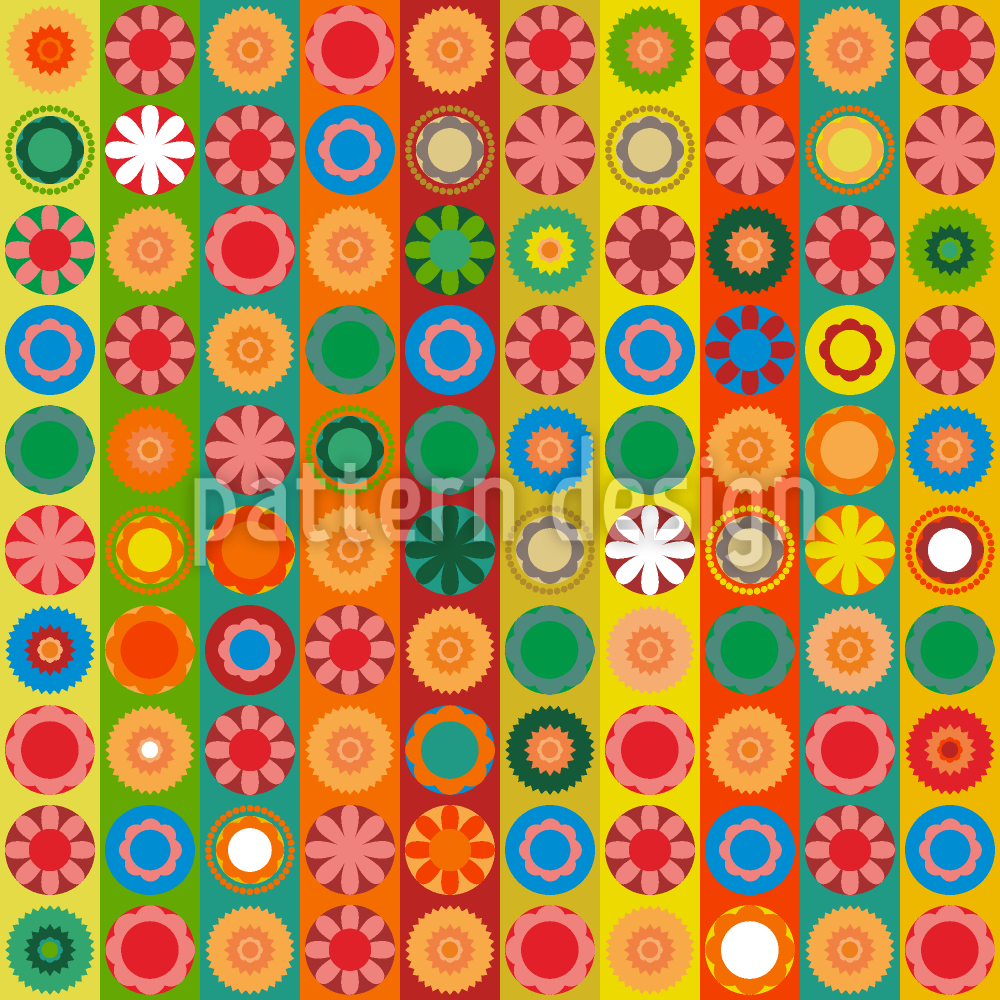 | Description | Rétro et extrêmement coloré ! Fleur fantaisie drôle avec des ornements floraux sur des rayures. | ||