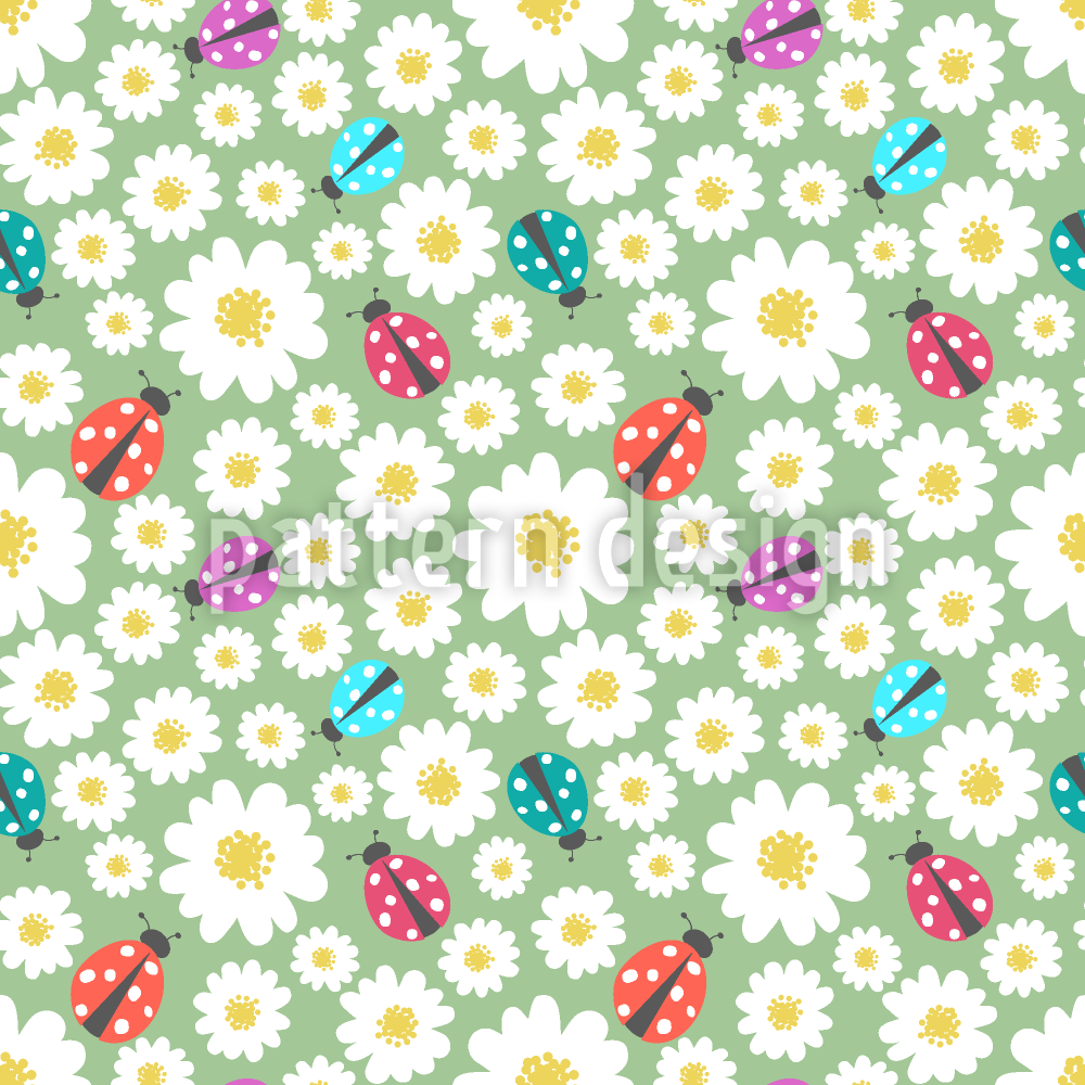 Coccinelles Amour Fleurs Motif Vectoriel Sans Couture