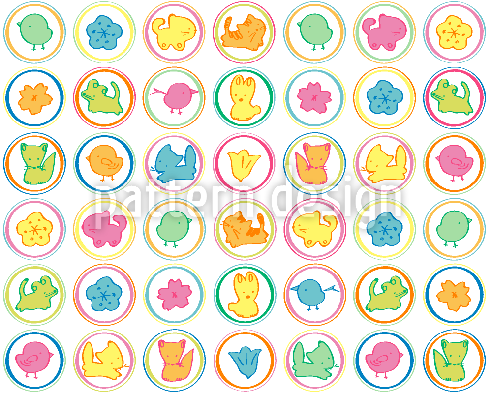 | विवरण | कितना प्यारा है! बिल्लियों, पक्षियों, लोमड़ियों, कुत्तों और खरगोशों को रंगीन हलकों में फूलों और पंखुड़ियों के साथ कैवर्ट। | ||