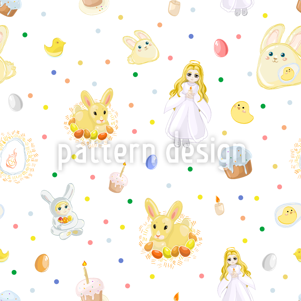 | विवरण | अंडे, खरगोश, मुर्गियों, स्वर्गदूतों और केक के साथ ईस्टर के लिए निर्बाध पैटर्न। | ||