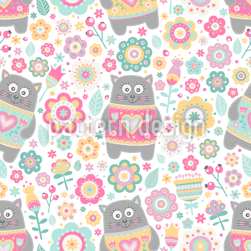 | विवरण | प्यारा बिल्ली और फूल चित्रों के साथ पैटर्न डिजाइन। | ||