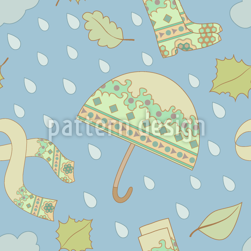 | विवरण | छतरियों, मेपल के पत्तों, जूते और लेस के साथ शरद ऋतु पैटर्न। | ||