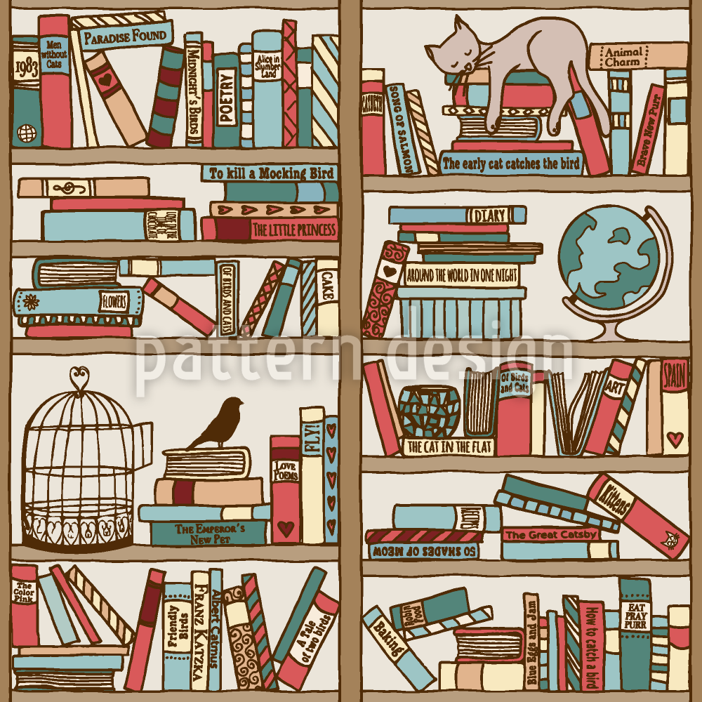 बुकशेल्फ़ सीमलेस वेक्टर पैटर्न डिजाइन