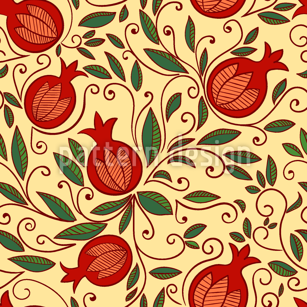 | विवरण | सजावटी अनार के फल और पत्तियों के साथ निर्बाध पैटर्न। | ||