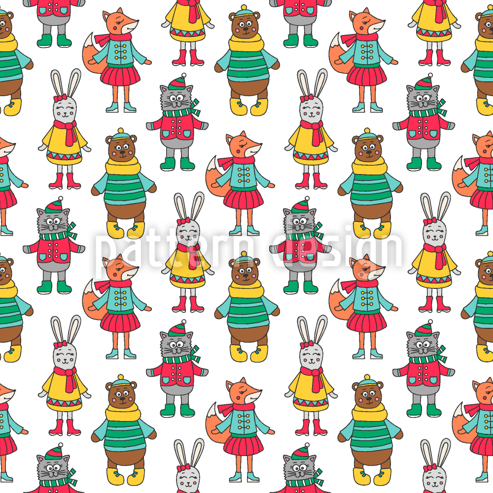 | विवरण | शीतकालीन जानवर हाथ से खींची गई बिल्लियों, खरगोशों, लोमड़ियों और कपड़ों के साथ भालू के साथ पैटर्न। | ||