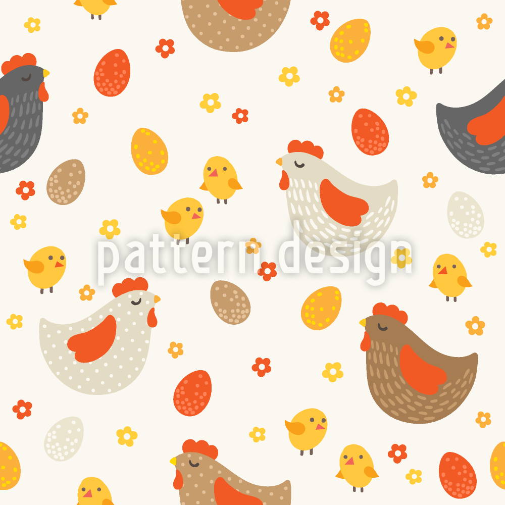 | विवरण | मुर्गियाँ, चूजों, अंडे और फूलों के साथ निर्बाध पैटर्न। | ||