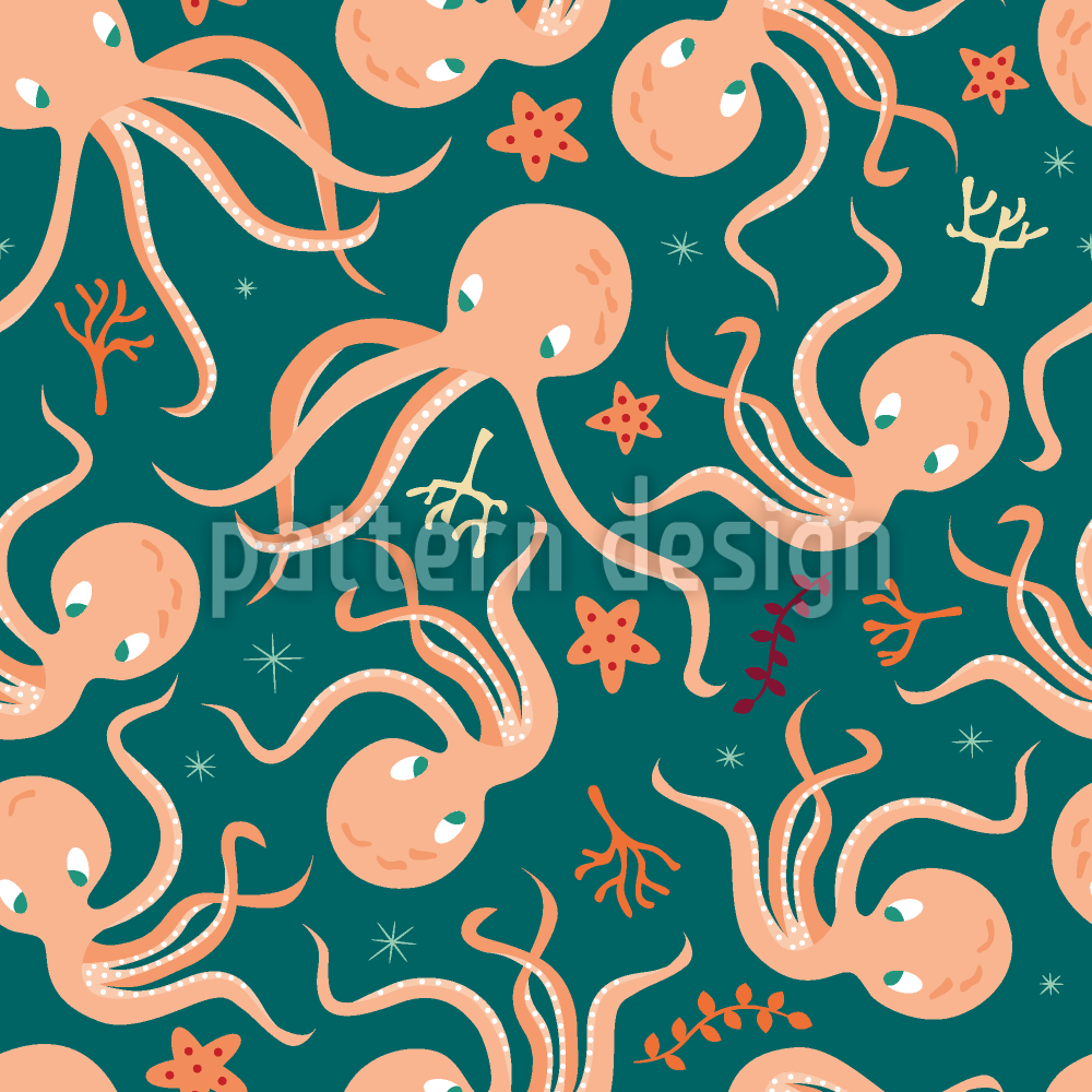 डांसिंग ऑक्टोपस सीमलेस वेक्टर पैटर्न डिजाइन