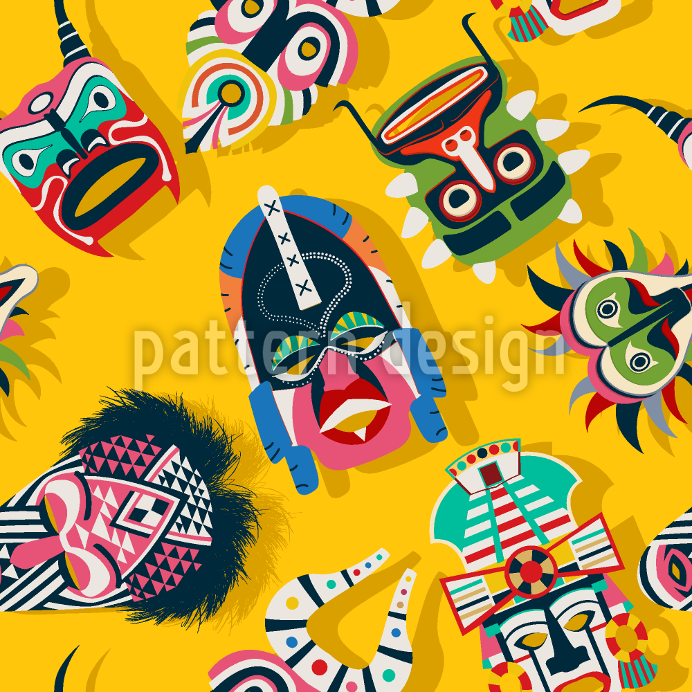| विवरण | आदिवासी मुखौटा चित्रों के साथ निर्बाध पैटर्न। | ||