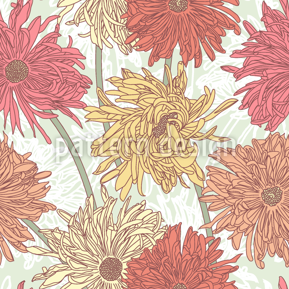 क्राइसेंथेमम ब्लूम सीमलेस वेक्टर पैटर्न डिजाइन