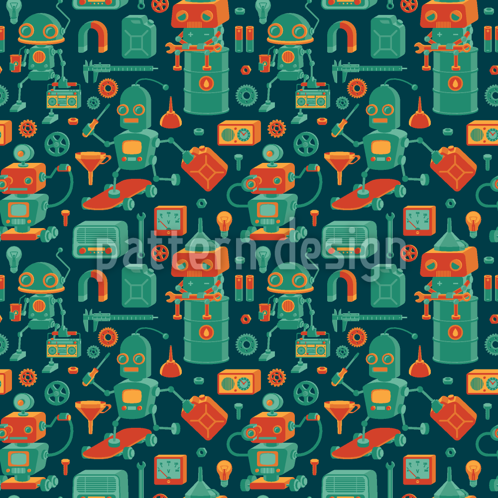 | विवरण | प्यारा रेट्रो रोबोट और उपकरण के साथ पैटर्न डिजाइन। | ||