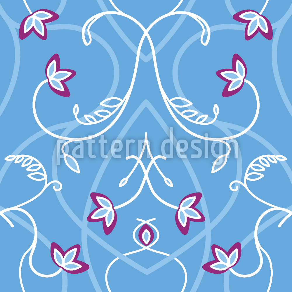 | विवरण | यह पुष्प पैटर्न एक हल्के नीले रंग की पृष्ठभूमि पर रोमांटिक फूल, पत्तियों और टेंड्रिल्ड शाखाओं को दिखाता है। | ||