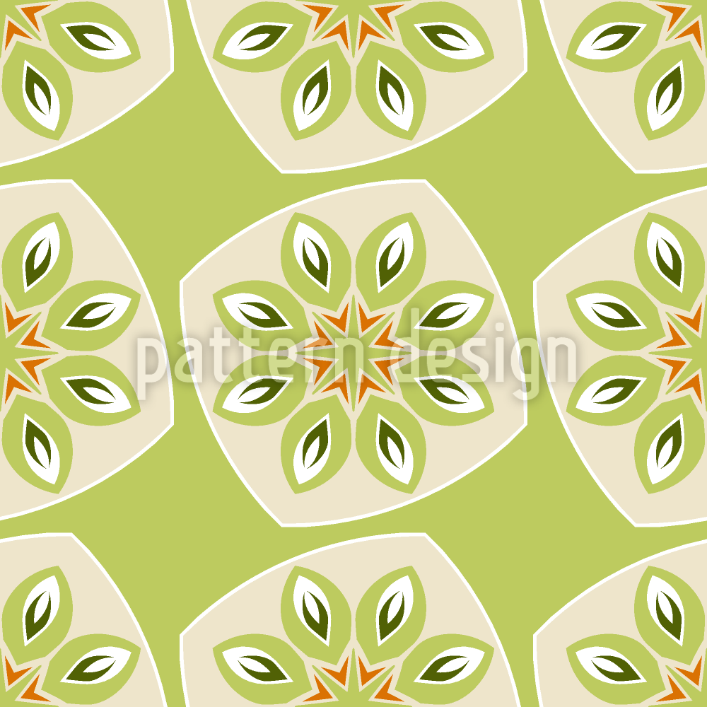 | विवरण | गोल चौकों में अमूर्त किवी जैसे फूलों के साथ पैटर्न डिजाइन। | ||