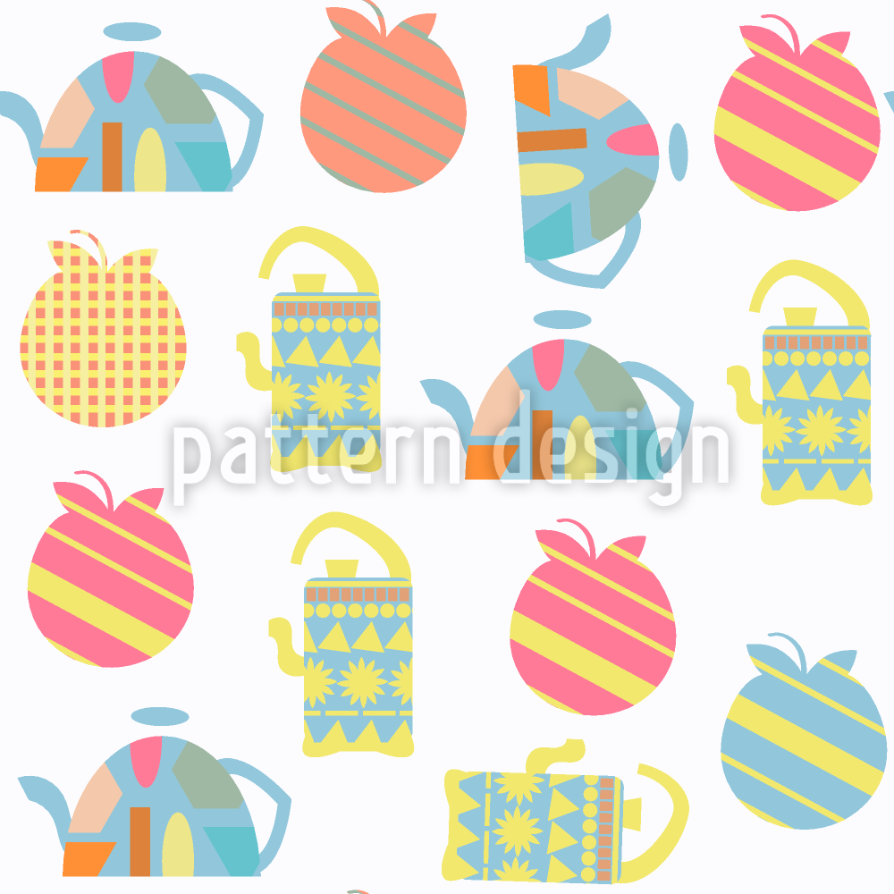 | विवरण | चाय के बर्तन और सेब के साथ रेट्रो पैटर्न डिजाइन। | ||