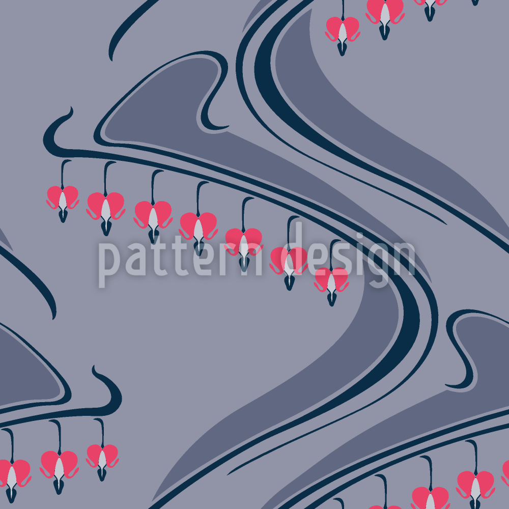 फ्लोरल हार्ट्स पिंक ऑन ग्रे सीमलेस वेक्टर पैटर्न डिजाइन
