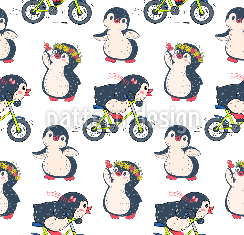 | विवरण | साइकिलों पर प्यारा हाथ से खींचे गए पेंगुइन के साथ निर्बाध पैटर्न। | ||