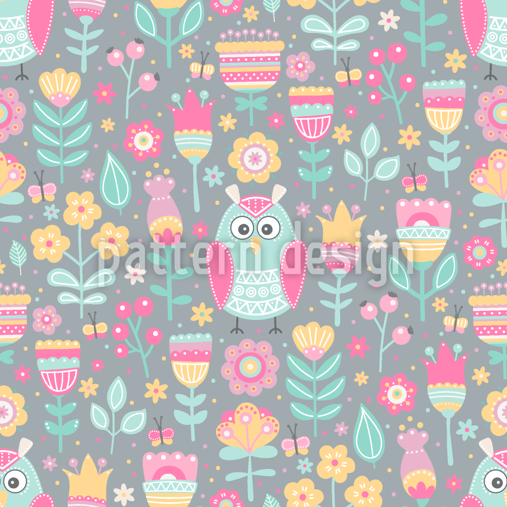 उल्लू इन द मीडोज सीमलेस वेक्टर पैटर्न डिजाइन