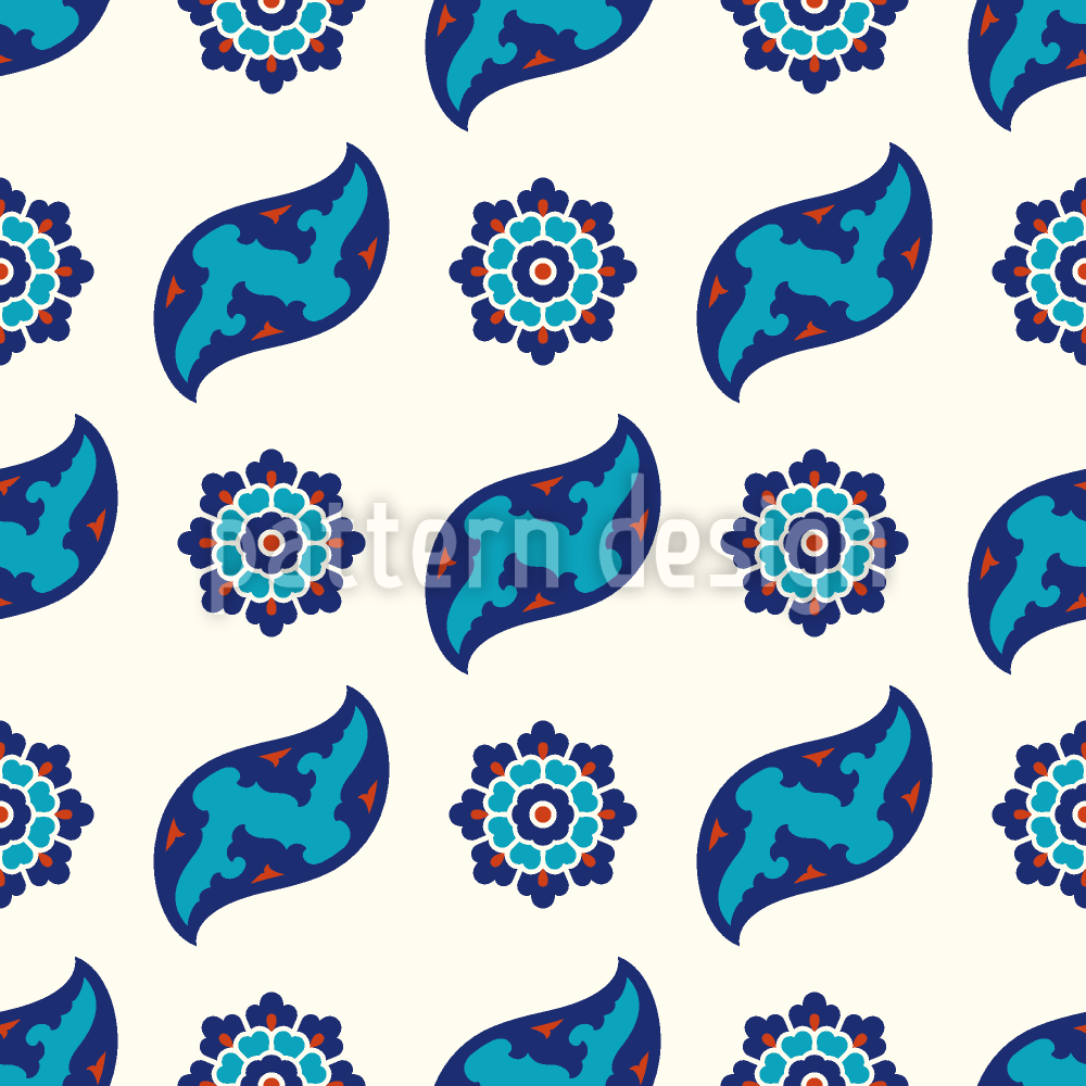 | विवरण | इज़्निक शैली में एस-टाइप आकृतियों और फूलों के साथ पारंपरिक निर्बाध आभूषण। | ||