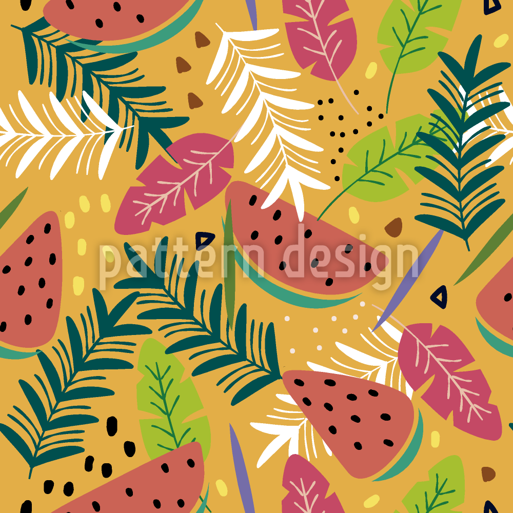 | विवरण | उष्णकटिबंधीय फल और विदेशी पत्तियों के साथ निर्बाध पैटर्न। | ||