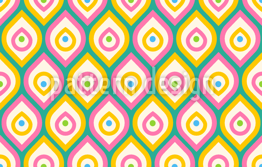 | विवरण | एक निर्बाध दोहराने के साथ रंगीन रेट्रो पैटर्न, मोर की याद ताजा करती है। | ||