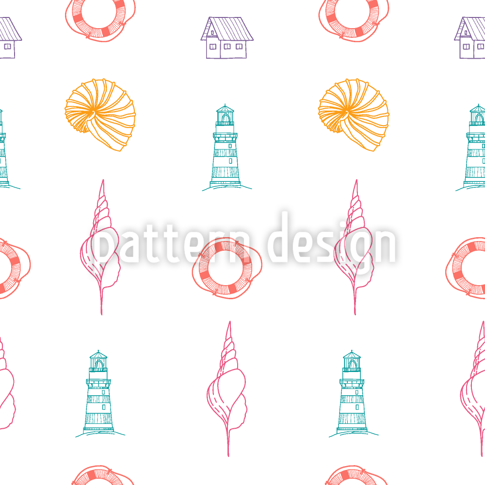 | विवरण | कंटूर्ड सीशेल, लाइटहाउस, लाइफबॉय और घरों के साथ निर्बाध समुद्री पैटर्न। | ||