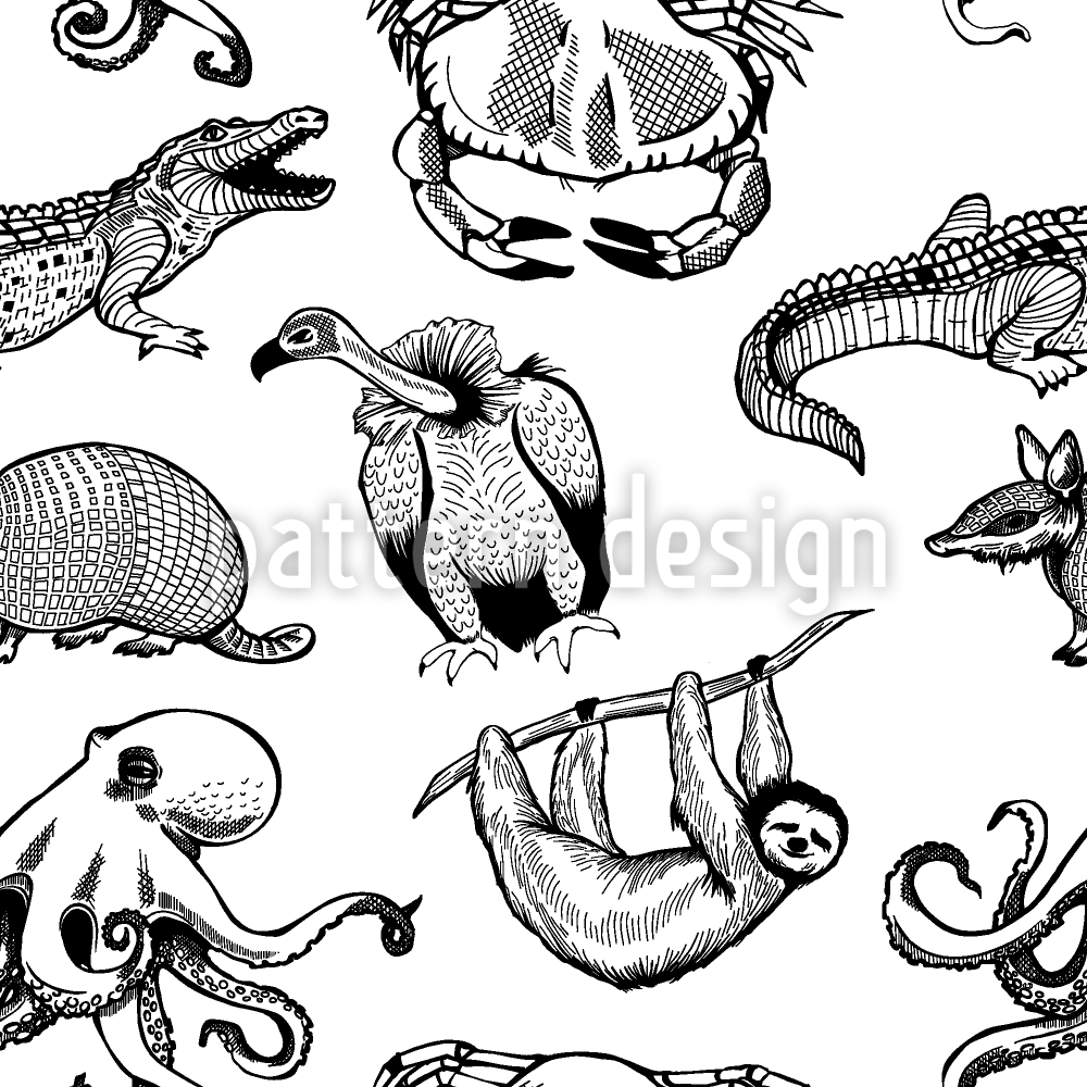 | विवरण | बिखरे हुए विभिन्न जानवरों के साथ निर्बाध मोनोक्रोम पैटर्न डिजाइन। | ||