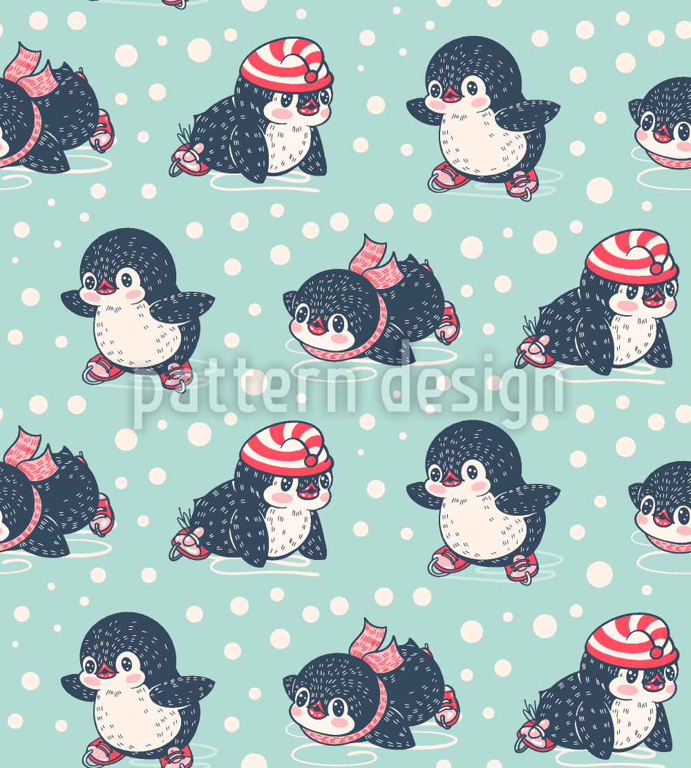 आइस स्केटिंग पेंगुइन सीमलेस वेक्टर पैटर्न डिजाइन