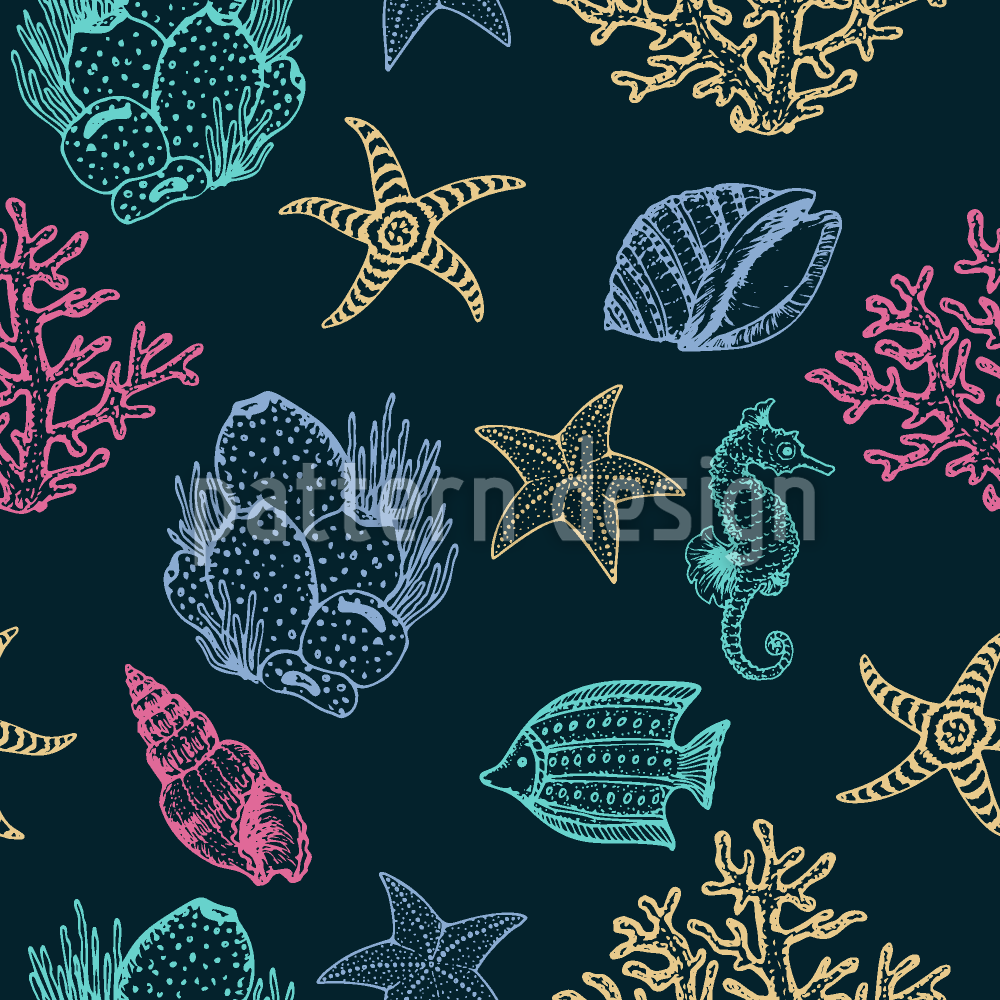 | विवरण | बिखरे हुए समुद्री जीवों के साथ निर्बाध समुद्री पैटर्न। | ||
