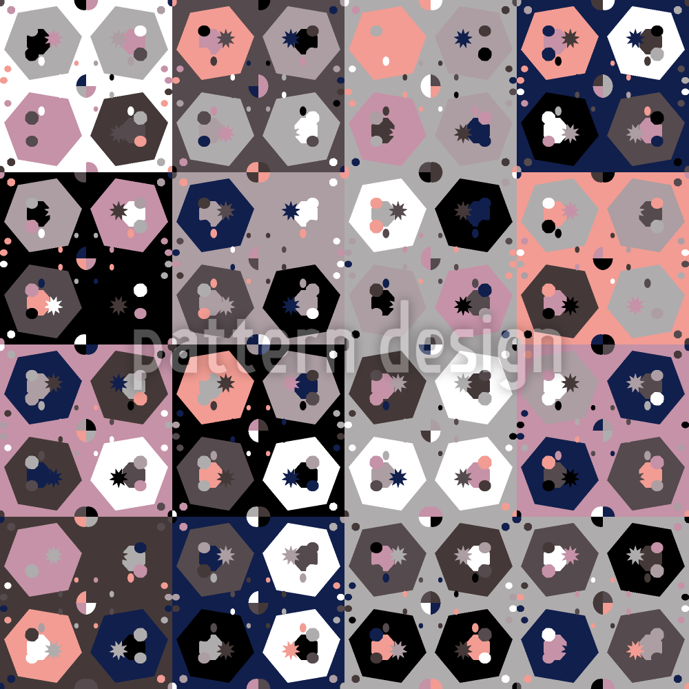 | विवरण | बिखरे हुए डॉट्स, हेक्सागन और चौराहों में सितारों के साथ निर्बाध ज्यामितीय पैटर्न डिजाइन। | ||