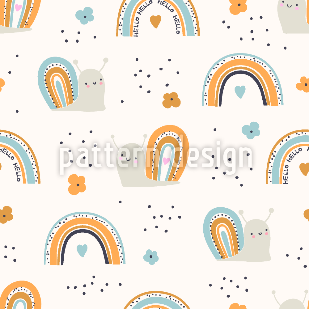 | विवरण | बिखरे हुए घोंघे, इंद्रधनुष और फूलों के साथ निर्बाध प्यारा पैटर्न डिजाइन। | ||
