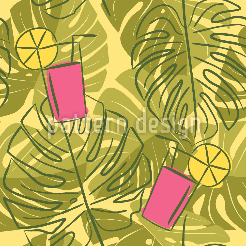 मॉन्स्टेरा लीव्स एंड लेमोनेड सीमलेस वेक्टर पैटर्न डिजाइन