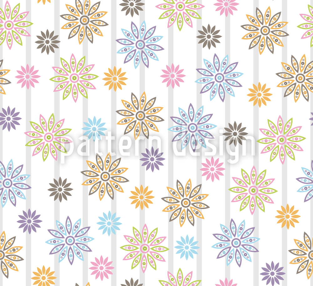 | विवरण | यह डिजाइन एक ग्रे धारीदार पृष्ठभूमि पर चांदी के महीन पेस्टल रंग के फूल दिखाता है। | ||