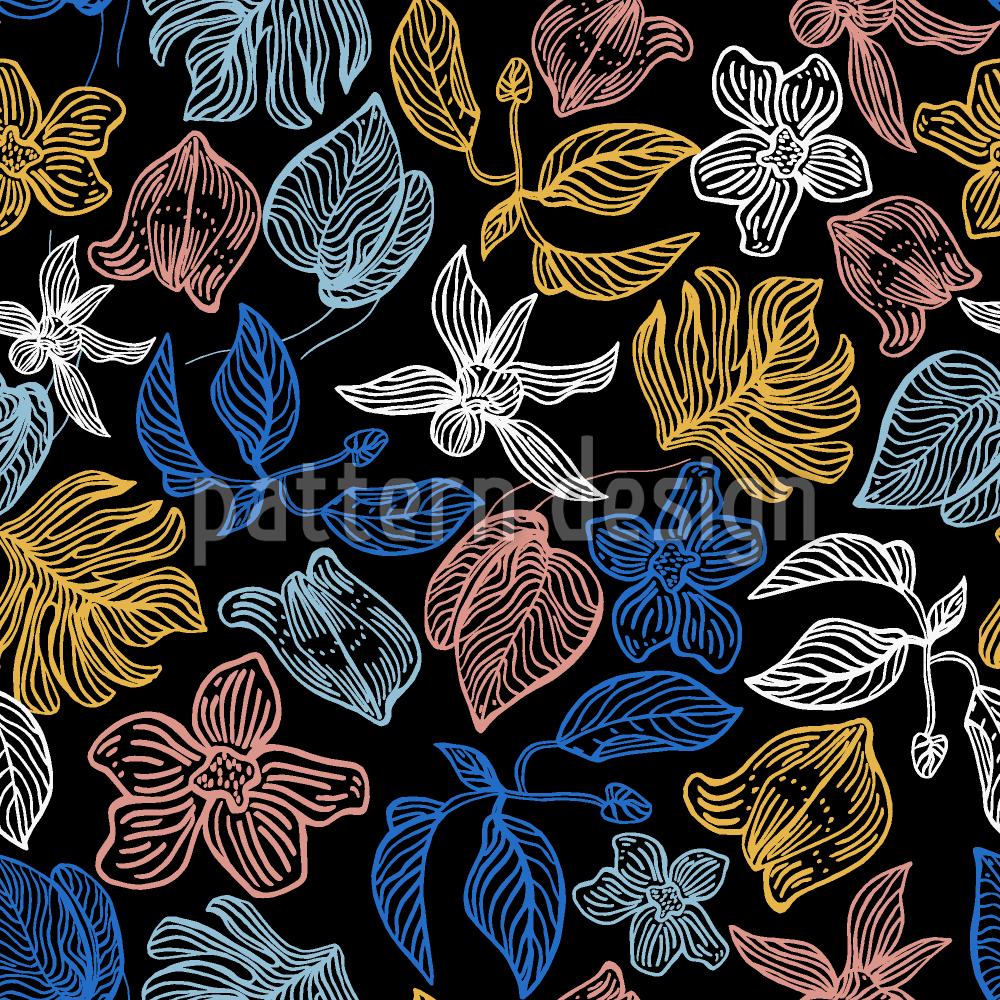 नाईट गार्डन फ्लोरा सीमलेस वेक्टर पैटर्न डिजाइन