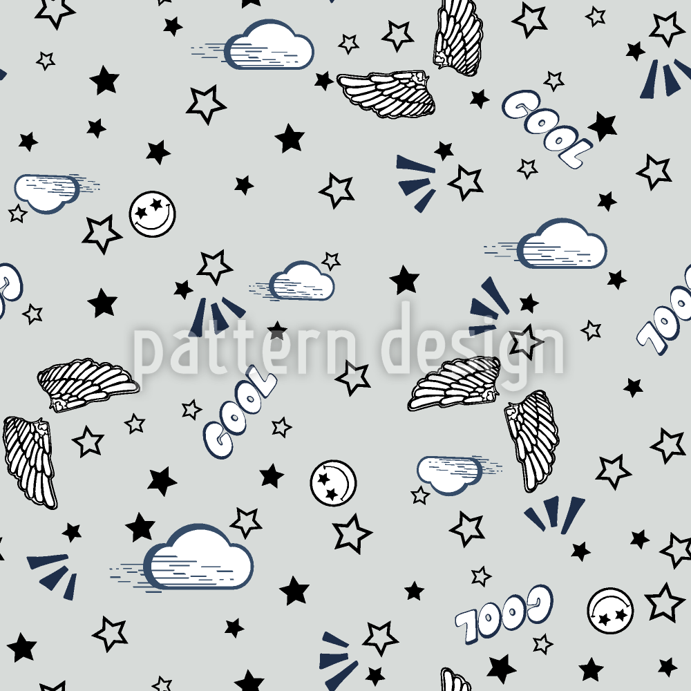 | विवरण | बिखरे हुए सितारों, पंख, स्माइली, बादल और लेटरिंग के साथ निर्बाध वेक्टर पैटर्न। | ||
