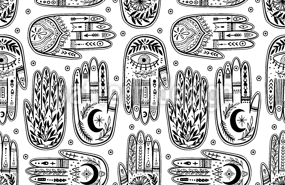 | विवरण | रहस्यवादी और जादुई प्रतीकों के साथ हाथों की व्यवस्था के साथ निर्बाध हाथ से खींचे गए वेक्टर पैटर्न। | ||
