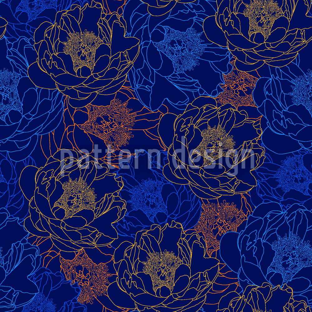 एक कंटूर के साथ peonies सीमलेस वेक्टर पैटर्न डिजाइन