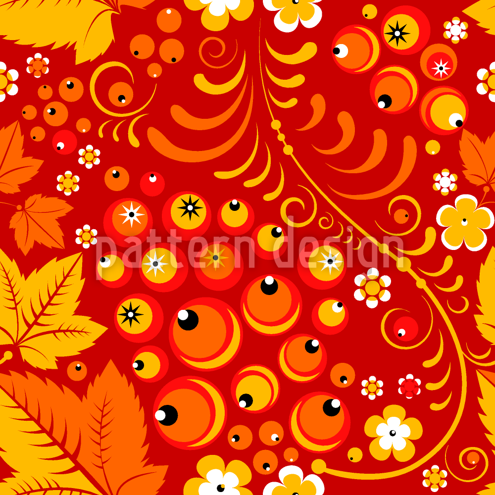 | विवरण | एक लाल मैदान पर करंट बेरीज। खोखलोमा शैली में रूसी लोक पैटर्न। | ||