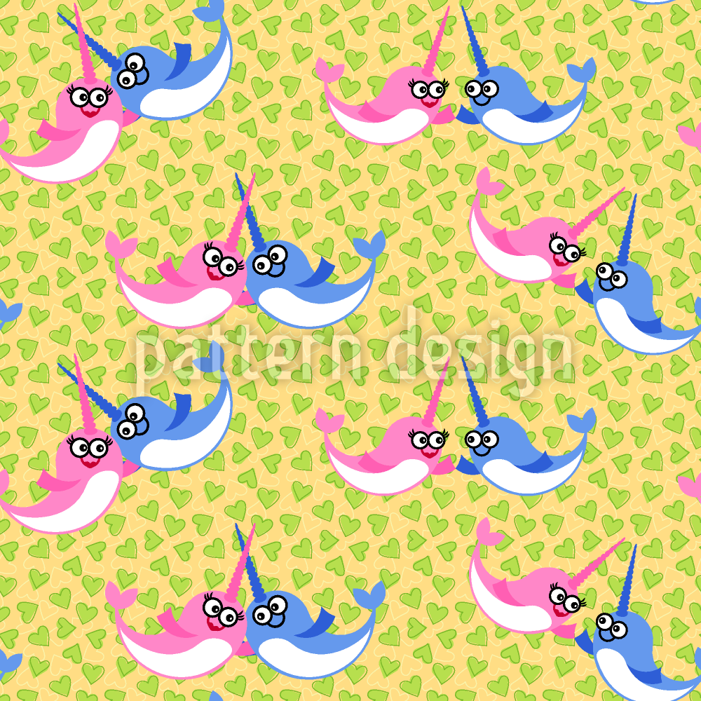 | विवरण | बिखरे दिलों वाली पृष्ठभूमि पर प्यार में नरवालों के साथ सहज पैटर्न। | ||