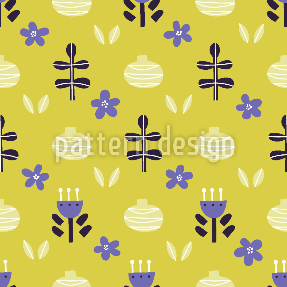 अमूर्त फूल पत्तियां और फूलदान सीमलेस वेक्टर पैटर्न डिजाइन