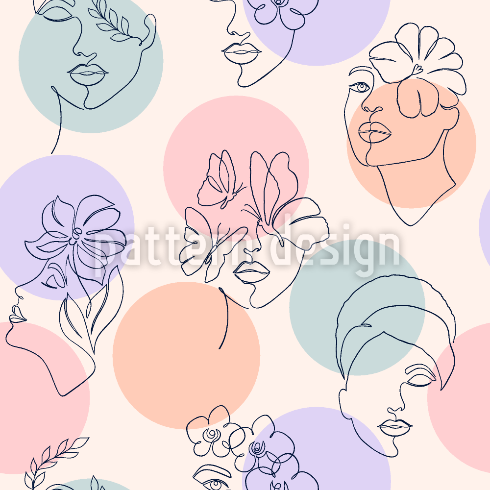| विवरण | महिलाओं के चेहरे और रंग के घेरे के साथ निर्बाध पैटर्न। | ||