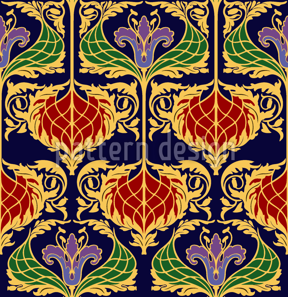 आर्ट नोव्यू फैंटेसी फ्लावर सीमलेस वेक्टर पैटर्न डिजाइन