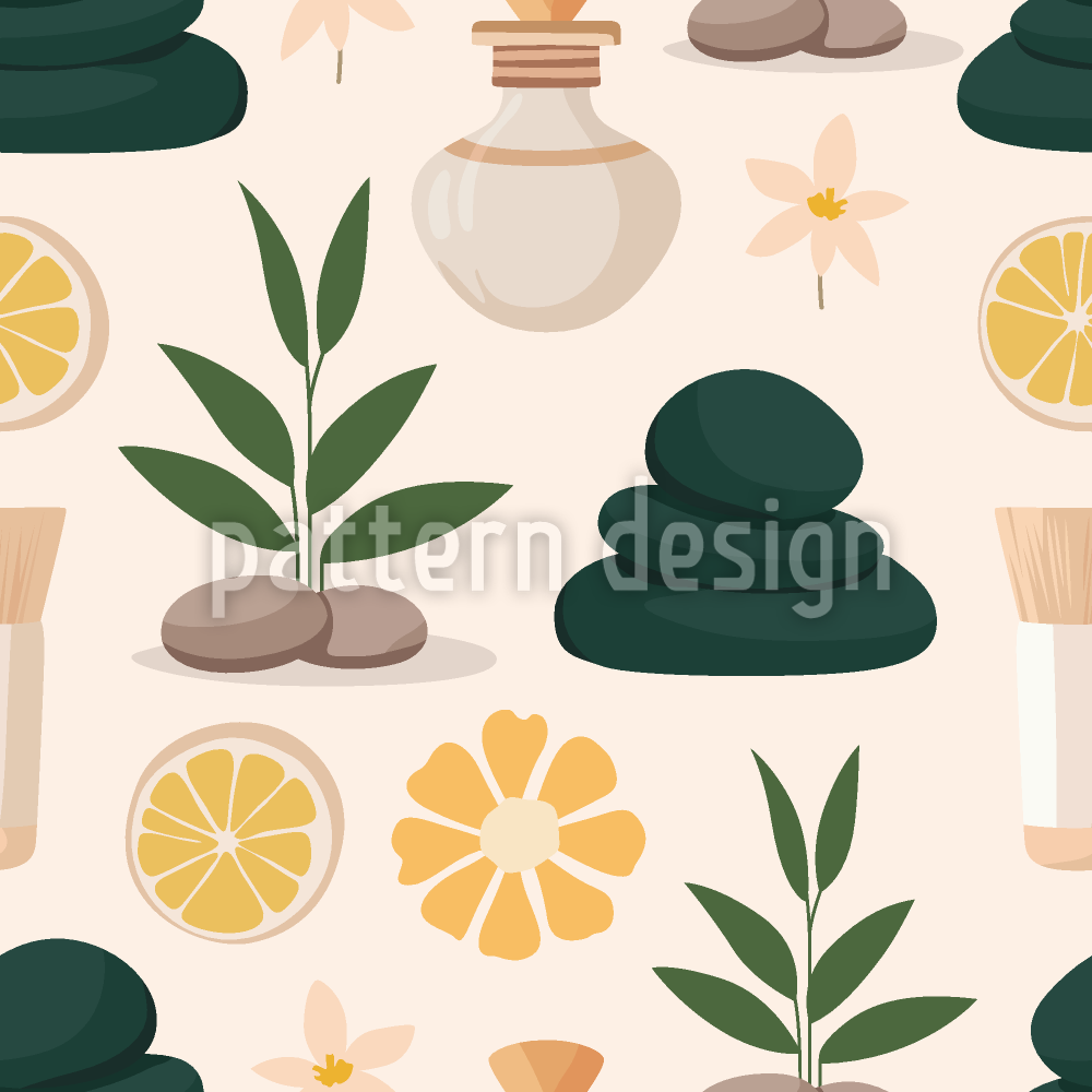 | विवरण | नींबू, पत्ते, फूल, ज़ेन स्टोन, मेकअप ब्रश और परफ्यूम की बोतलों के साथ शांत स्पा पैटर्न। | ||