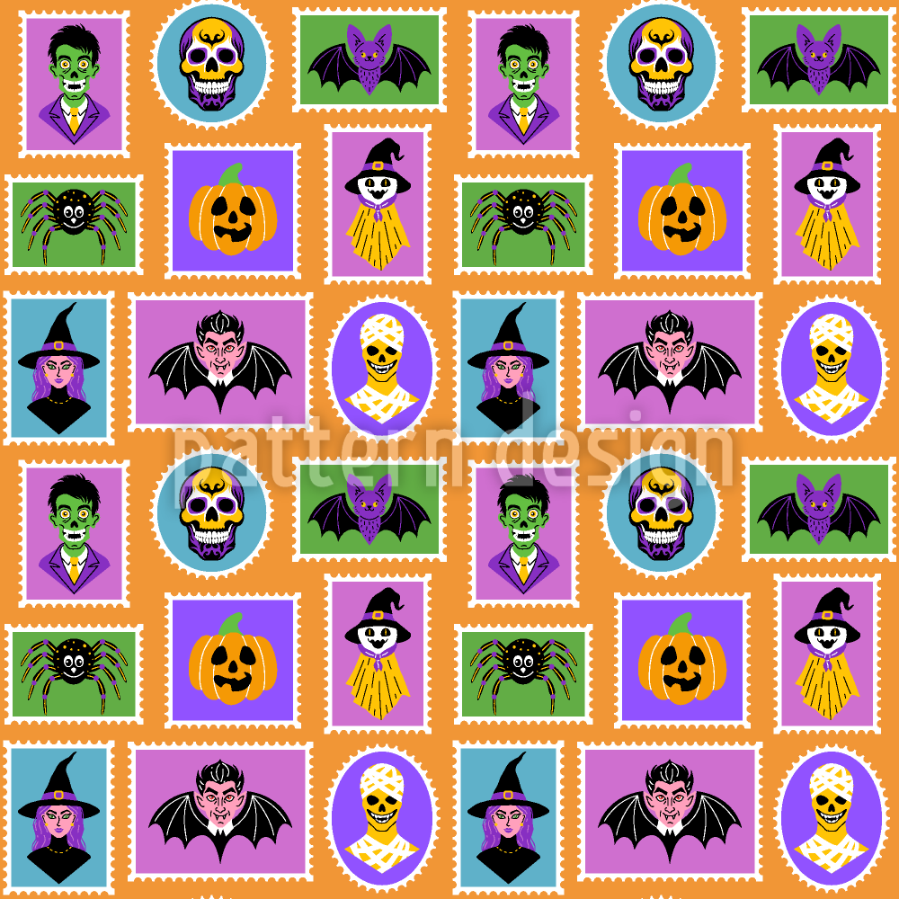 हैलोवीन के लिए पोस्ट स्टैम्प सीमलेस वेक्टर पैटर्न डिजाइन