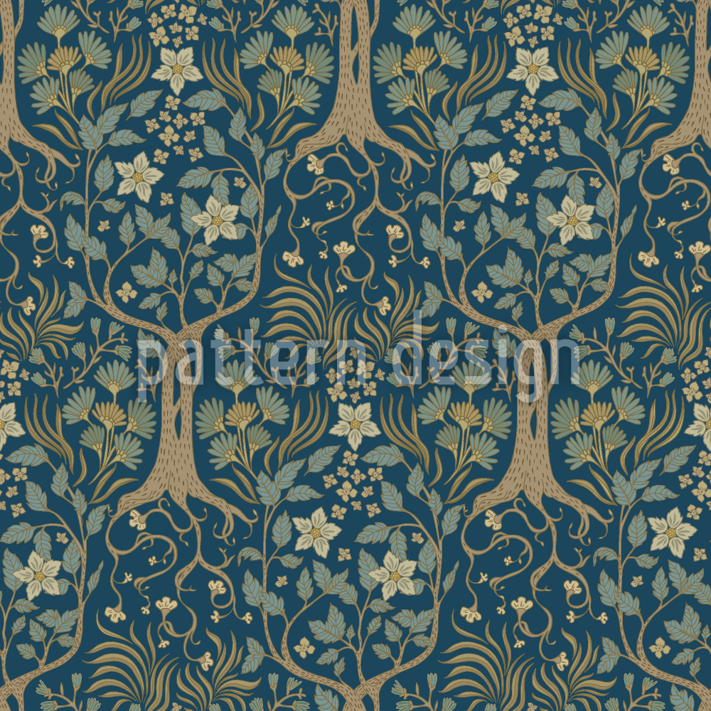 | विवरण | रात के समय की सेटिंग में पेड़ों और फूलों के साथ एक जादुई बगीचे का चित्रण करने वाला विंटेज पैटर्न। | ||
