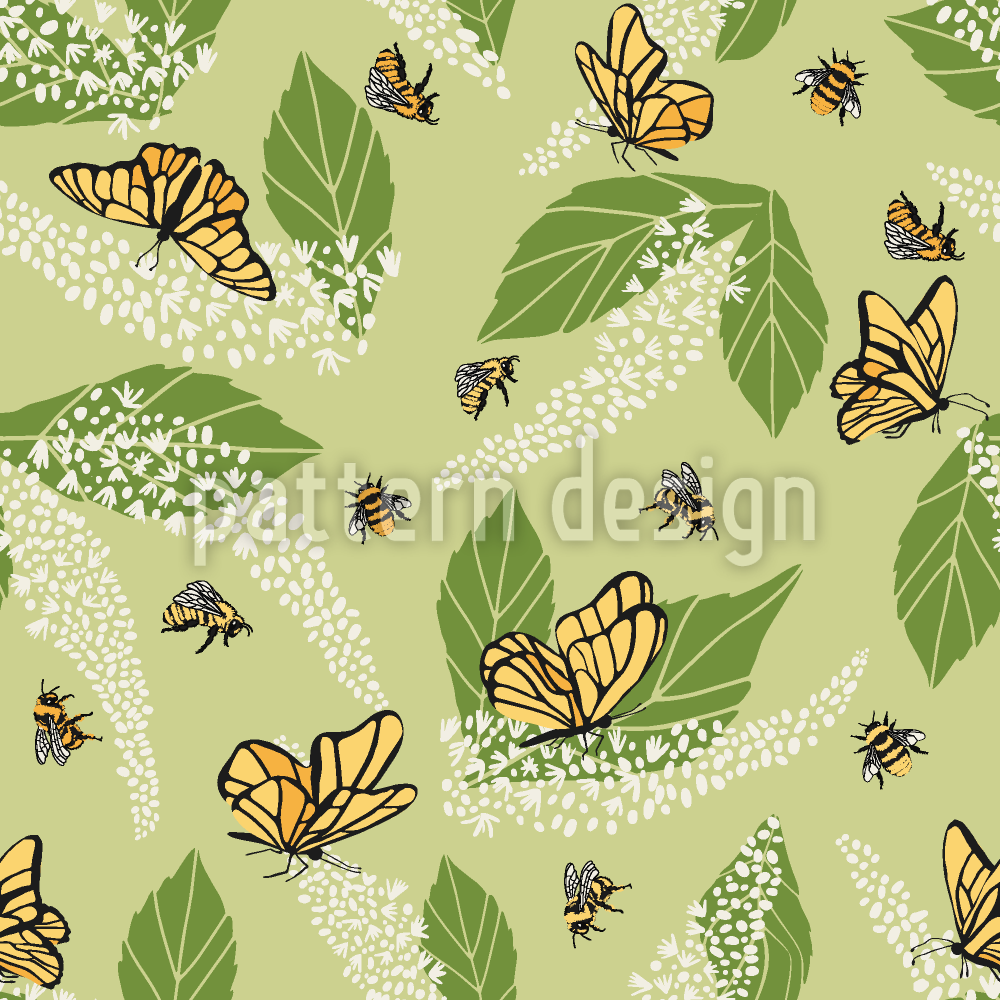 भौंरा और तितलियाँ सीमलेस वेक्टर पैटर्न डिजाइन