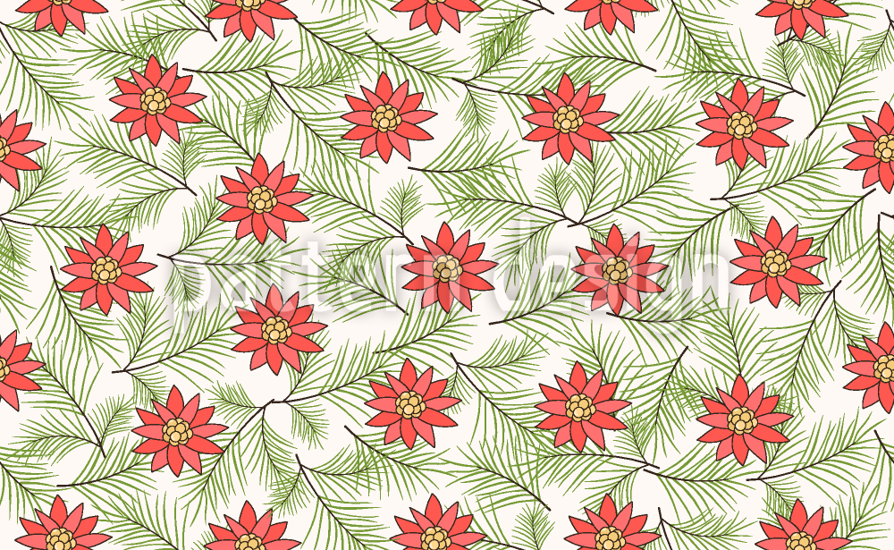 | विवरण | स्टाइलिज्ड पॉइन्सेटिया फूलों और पाइन सुइयों के साथ पाइन ट्री टहनियों के साथ क्रिसमस सीज़न पैटर्न। | ||