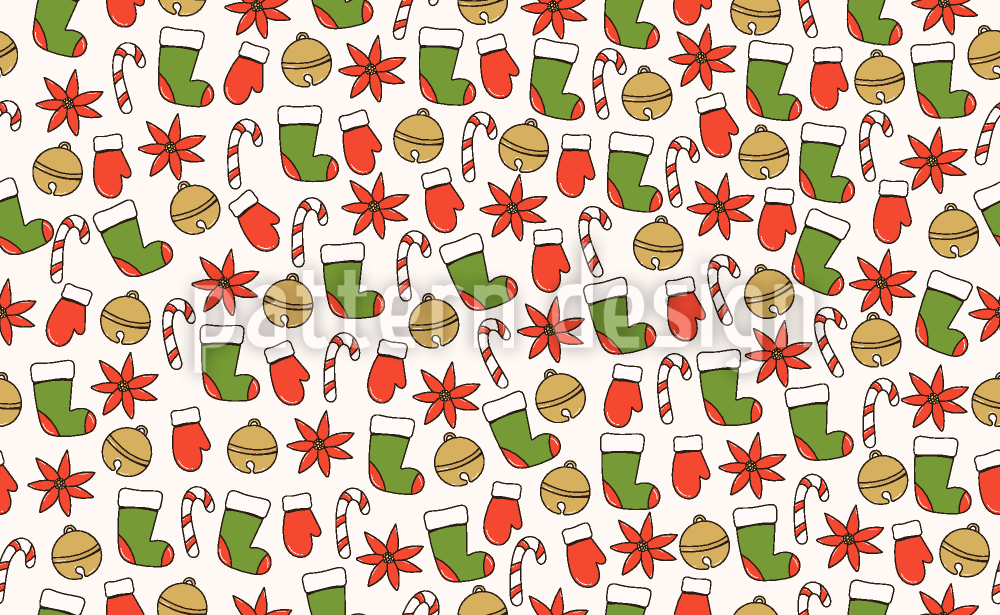 | विवरण | कार्टून क्रिसमस तत्वों जैसे स्टॉकिंग्स, कैंडी केन, बेल्स, दस्ताने और पॉइन्सेटिया के साथ मजेदार क्रिसमस पैटर्न। | ||