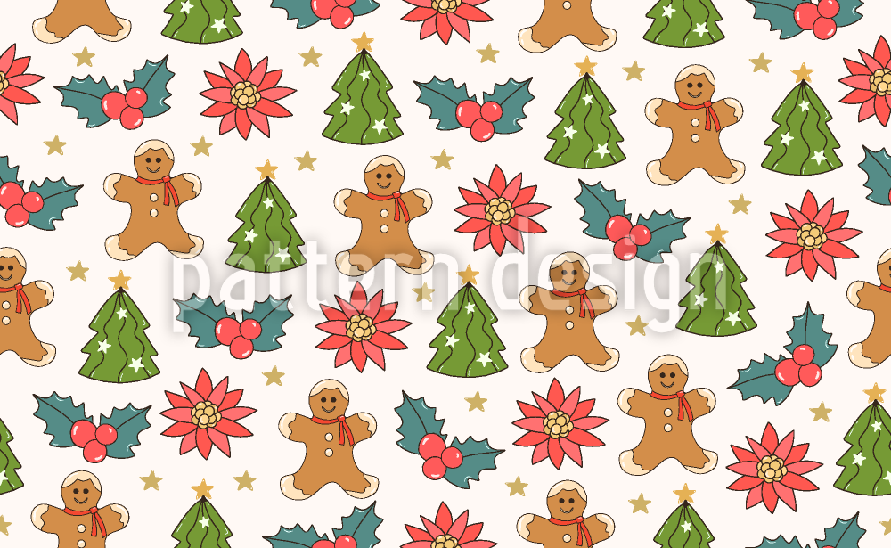 | विवरण | क्रिसमस ट्री, जिंजरब्रेड, पॉइन्सेटिया, होली और छोटे सितारों के साथ क्रिसमस पैटर्न। | ||