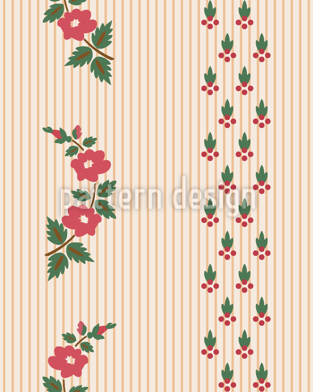 फूल और जामुन के साथ पिनस्ट्रिप सीमलेस वेक्टर पैटर्न डिजाइन