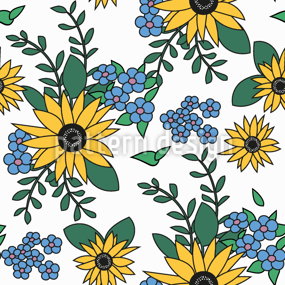 | विवरण | आकर्षक सूरजमुखी के पत्तों और छोटे-छोटे फॉरगेट-मी-नॉट्स के साथ फूलों का पैटर्न, एक गुलदस्ता में एक साथ रखा जाता है। | ||
